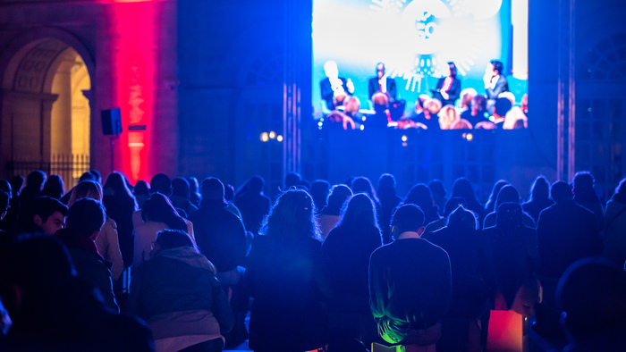 • – la diffusion publique sur écran géant dans la Cour de Buren du Palais Royal