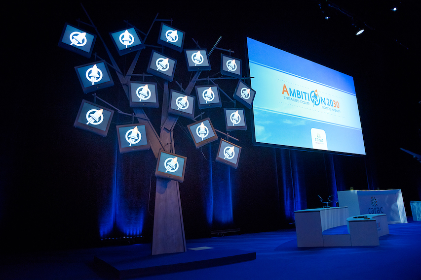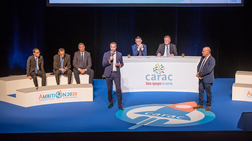 Carac, a mutual fund selected sensation ! for the design and organization of its 95th anniversary internal convention focusing on its future strategic project. The agency gave structure to the messages and support in the writing of contents, choose the journalist and external speakers to illustrate the strategic axes, animate internal working groups, assist in speaking, make videos and explanatory animations, encourage exchanges between employees, design the scenography and infographics. The agency oversaw the entire event, from set-up to dismantling: decoration, catering, entertainment, reception, goodies, etc.